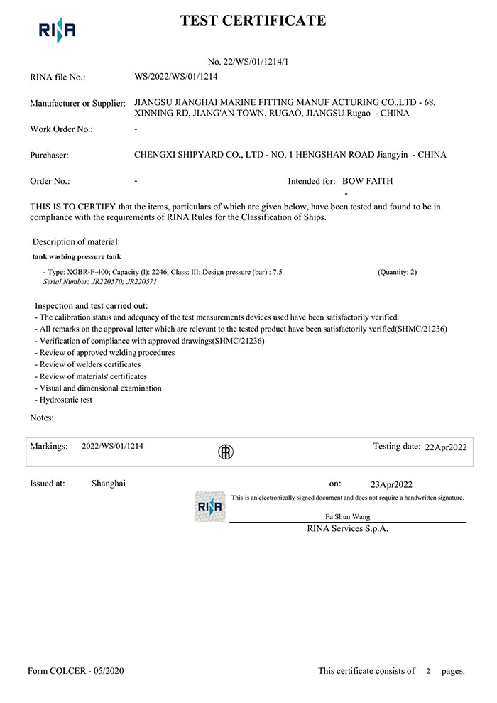 船用空氣瓶部件、材質(zhì)的設(shè)計(jì)要求